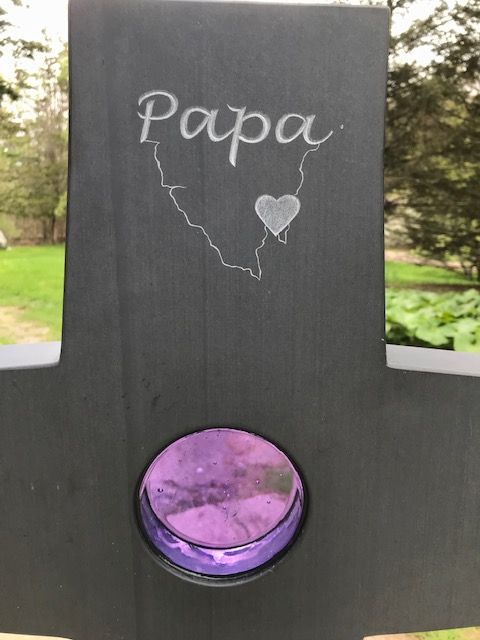 The glass is delicately placed inside the stone, adding a simple sculpture to this family memorial.