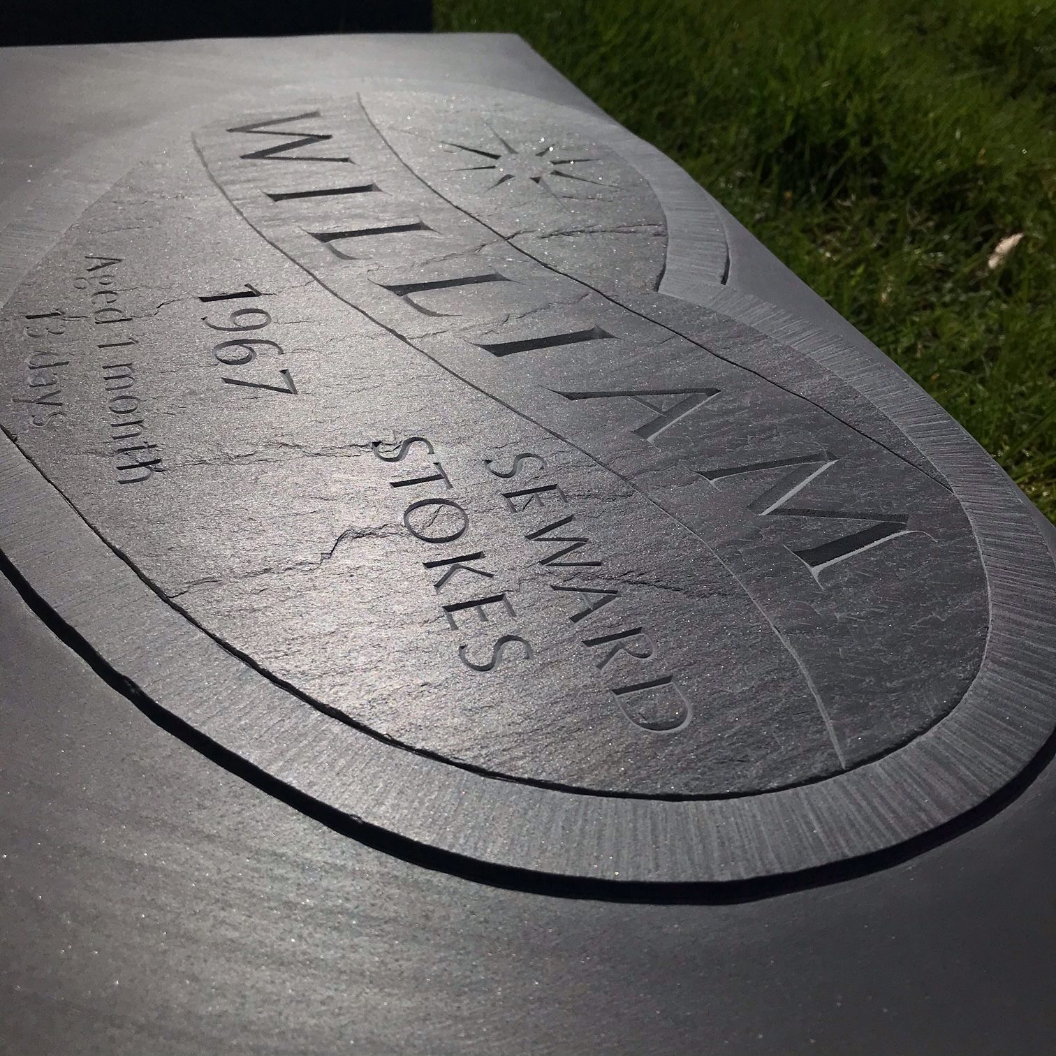 The sunbeam between Richard's birth and death years represent the brilliant soul he was. The sunbeam on baby Williams monument honors the light and love he gave to his father.